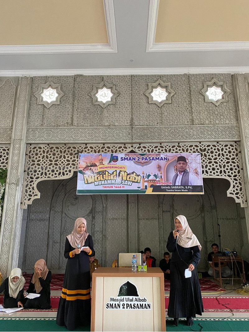 Pada Selasa tanggal 17 September 2024 bertempat di Masjid Ulul Albab SMA Negeri 2 Pasaman diadakan peringatan Maulid Nabi Muhammad SAW yang ke 1446 H. Kegiatan ini diikuti oleh kepala sekolah, guru, tenaga kependidikan, dan seluruh siswa SMAN 2 Pasaman. Rangkaian acara ini di susun oleh Ektrakurikuler Ikatan Remaja Masjid (IRM) yang telah mempersiapkan segalanya jauh sebelum plaksanaan kegiatan. Kegiatan di buka dengan pembacaan sari tilawah, dilanjutkan dengan pembukaan oleh Kepala SMAN 2 Pasaman Drs. Aswir, M.Pd lalu dilanjutkan dengan rangkaian acara oleh siswa anggota IRM. Kegiatan inti yakni ceramah oleh Ustadz Sabrata, S.Pd.