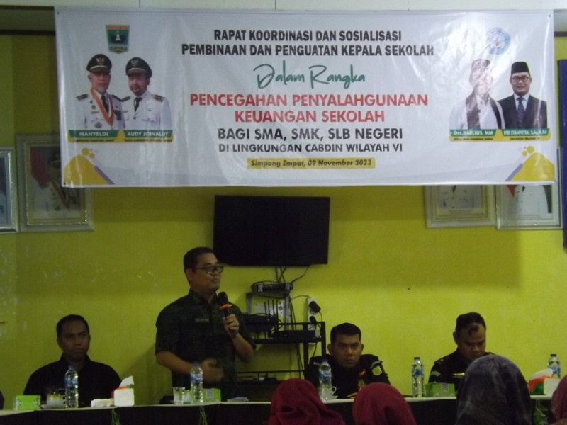 Rapat Koordinasi dan Sosialisasi Pembinaan & Penguatan Kepala Sekolah dalam rangka Pencegahan Penyalahgunaan Keuangan Sekolah bagi SMA, SMK, SLB Negeri di lingkungan Cabdin Wilayah VI